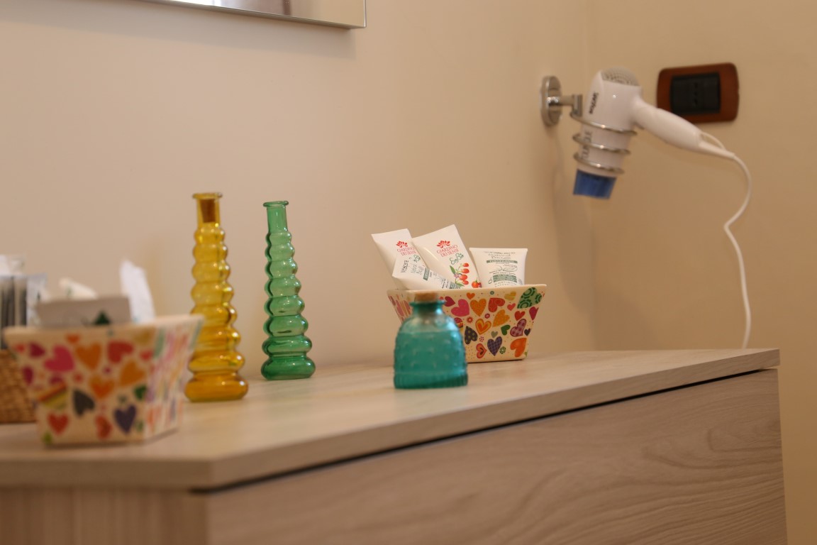 The DeLuxe double room is a room that is suitable for leisure stays. Modern and comfortable, it is equipped with every comfort, a balcony with a city view, a double bed, an en suite bathroom separated by a shower area and a beauty set with courtesy set and hairdryer.